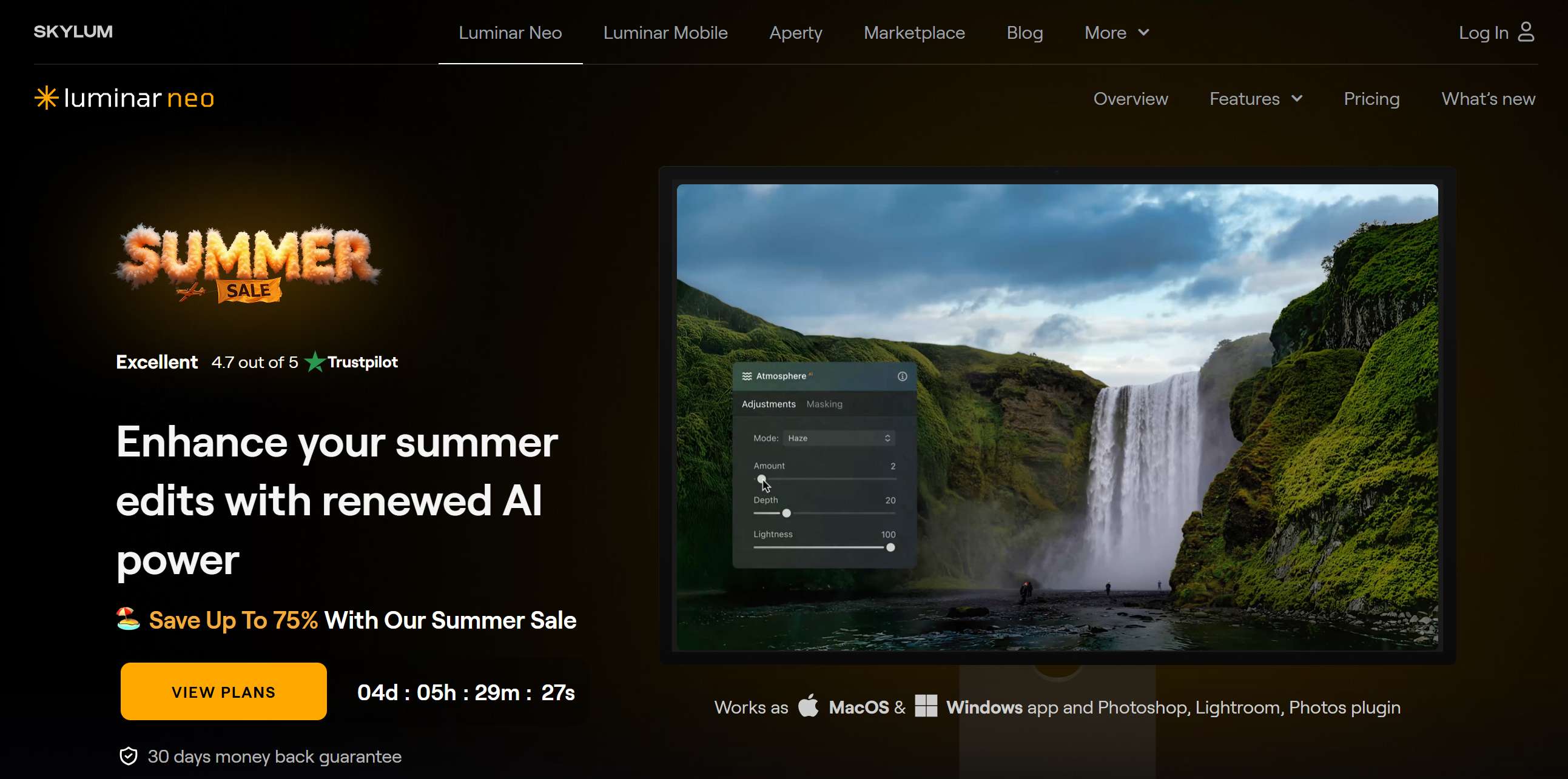 Luminar Neo from Skylum is built from the ground up around AI tools, and its AI sky replacement is one of its flagship features. It's designed for photographers who want to harness AI for creative and realistic edits quickly.