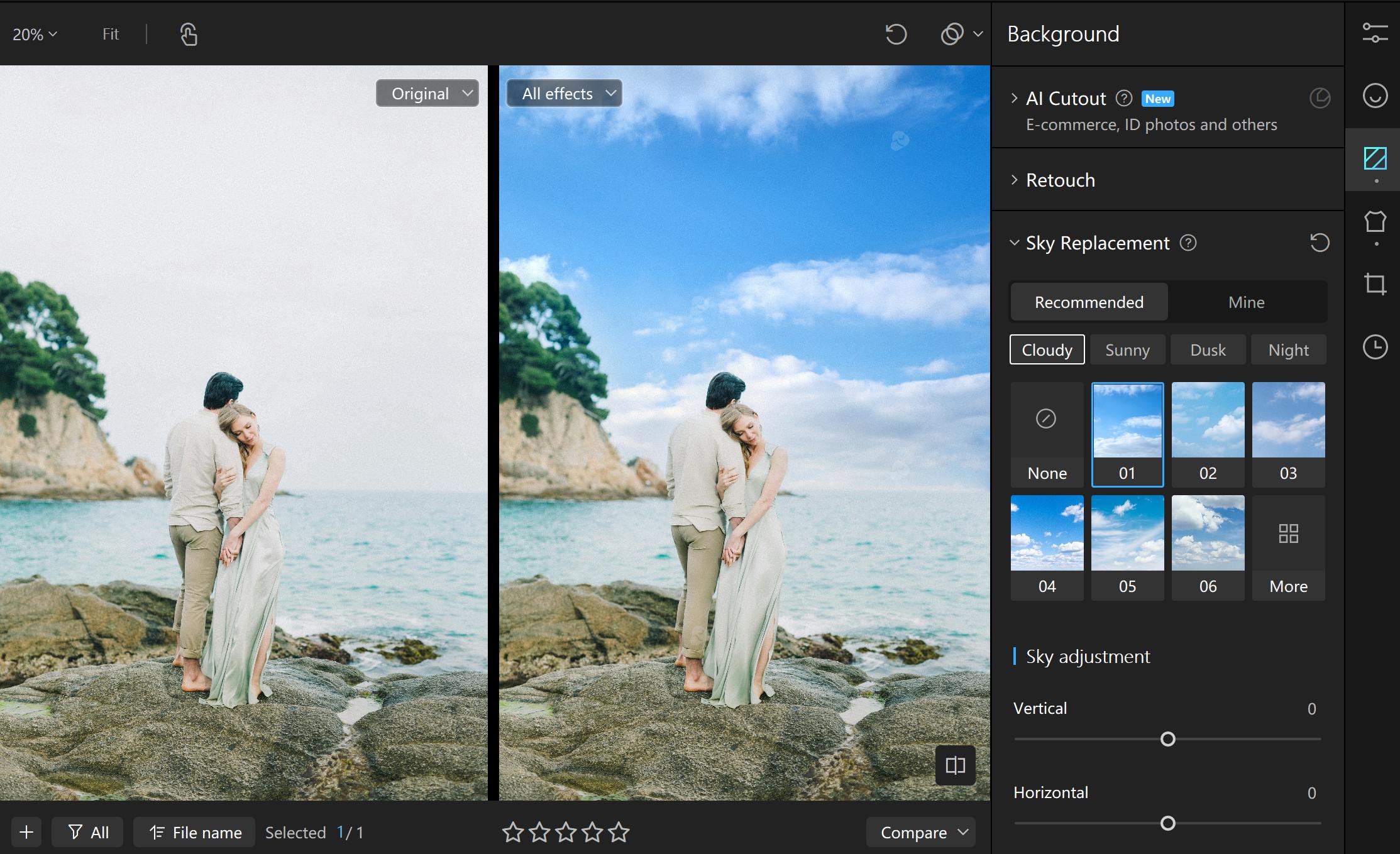- AI-Powered Precision: Its sky replacement tool intelligently detects the horizon and blends your new sky seamlessly around complex objects like trees and hair, avoiding that obvious "cut-out" look.