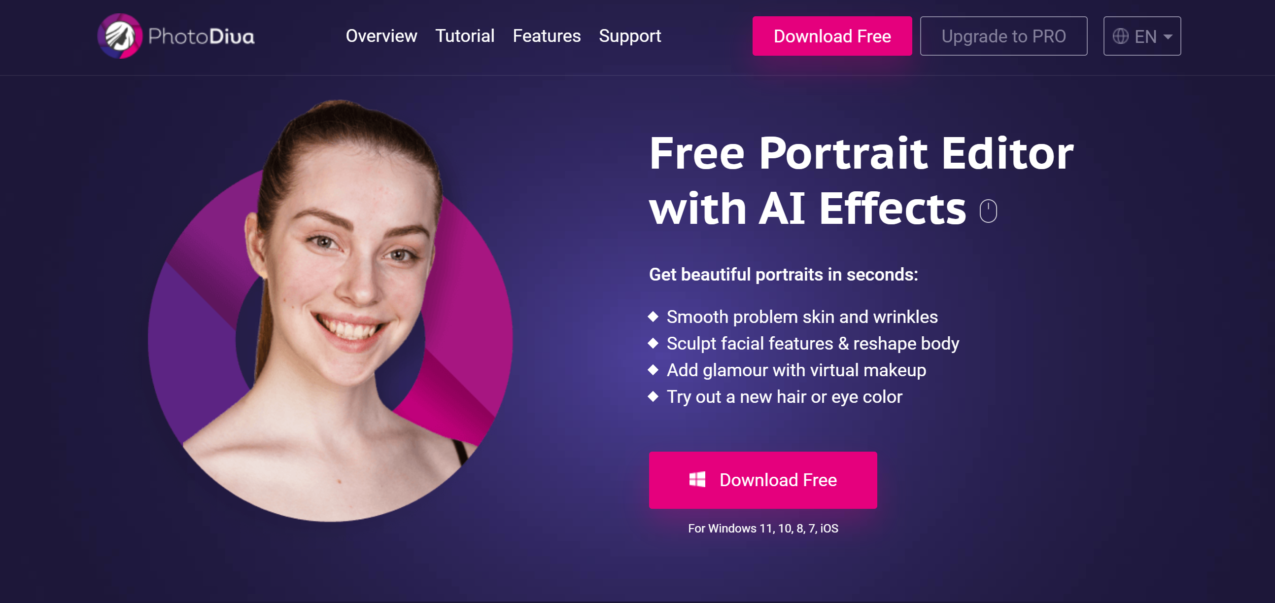 - Full-Featured: A photo editor with functions of collages, design templates, and retouching tools