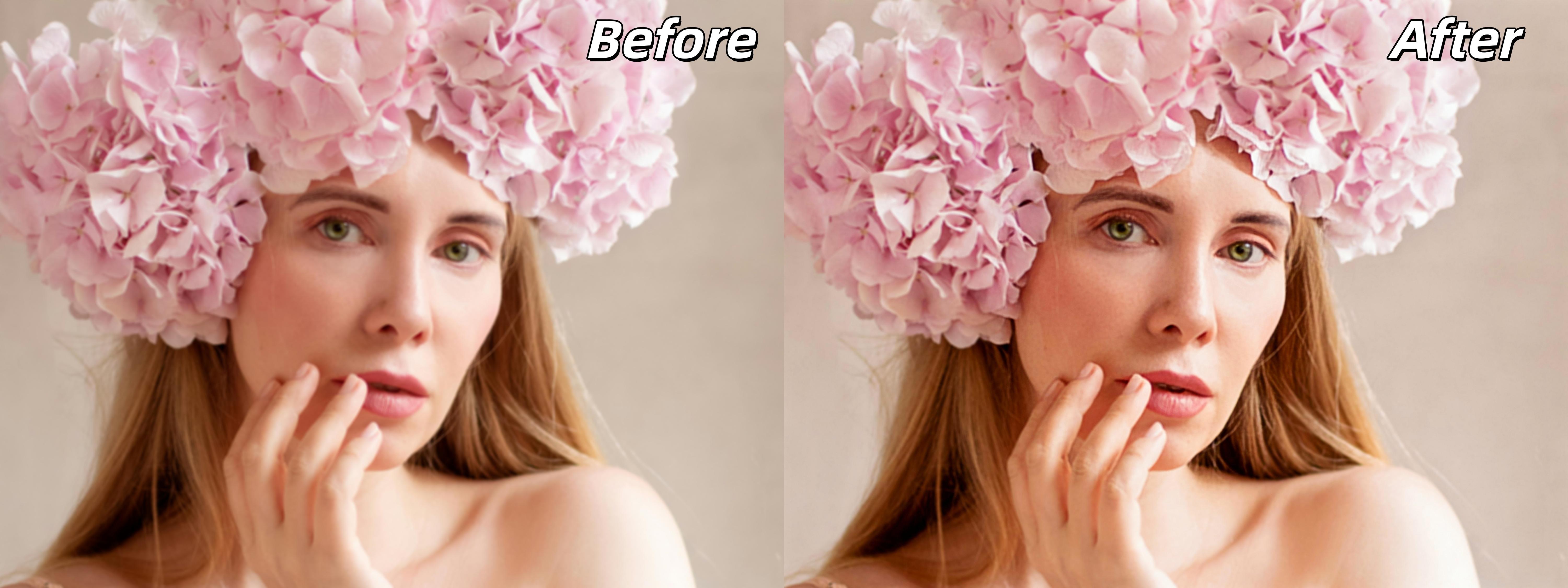 Kumoo intelligently analyzes and reconstructs facial details, enhancing sharpness and clarity. It restores details like eyes, lips, and contours, making your subject look vibrant without affecting the skin texture negatively.