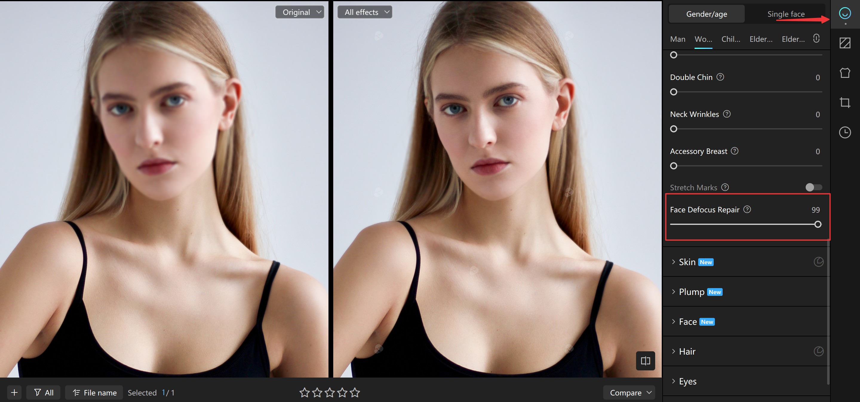 1. Face Defocus Repair - Fix blurred faces