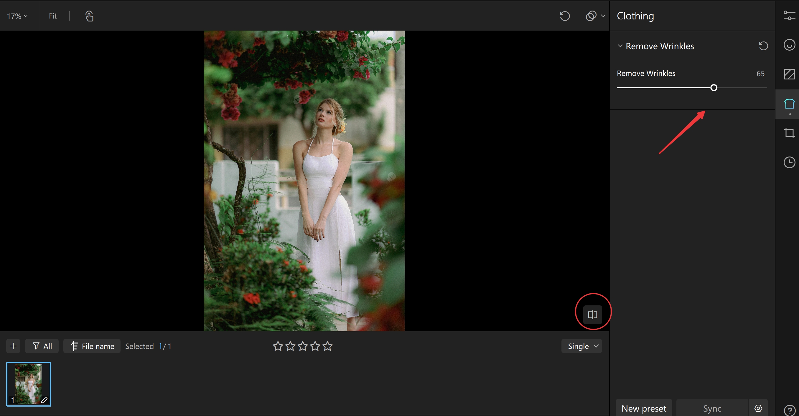 Move the slider back and forth to revalue the intensity. While changing the intensity value, you have to check the real-time result in Preview to avoid over-retouching. At the same time, you can use the B|A button to preview before/after results.