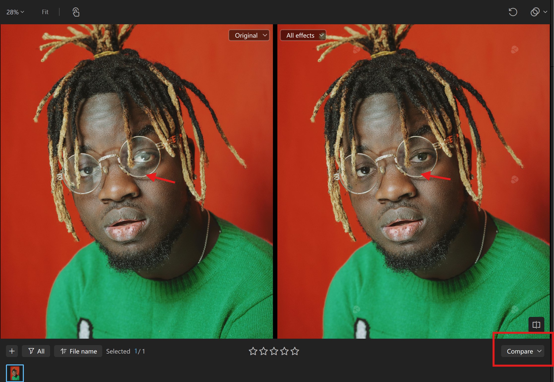 While you can adjust your lighting setup to minimize glare, it's not always possible to avoid it completely, especially in spontaneous or natural light sessions. That's where AI-powered editing comes in.