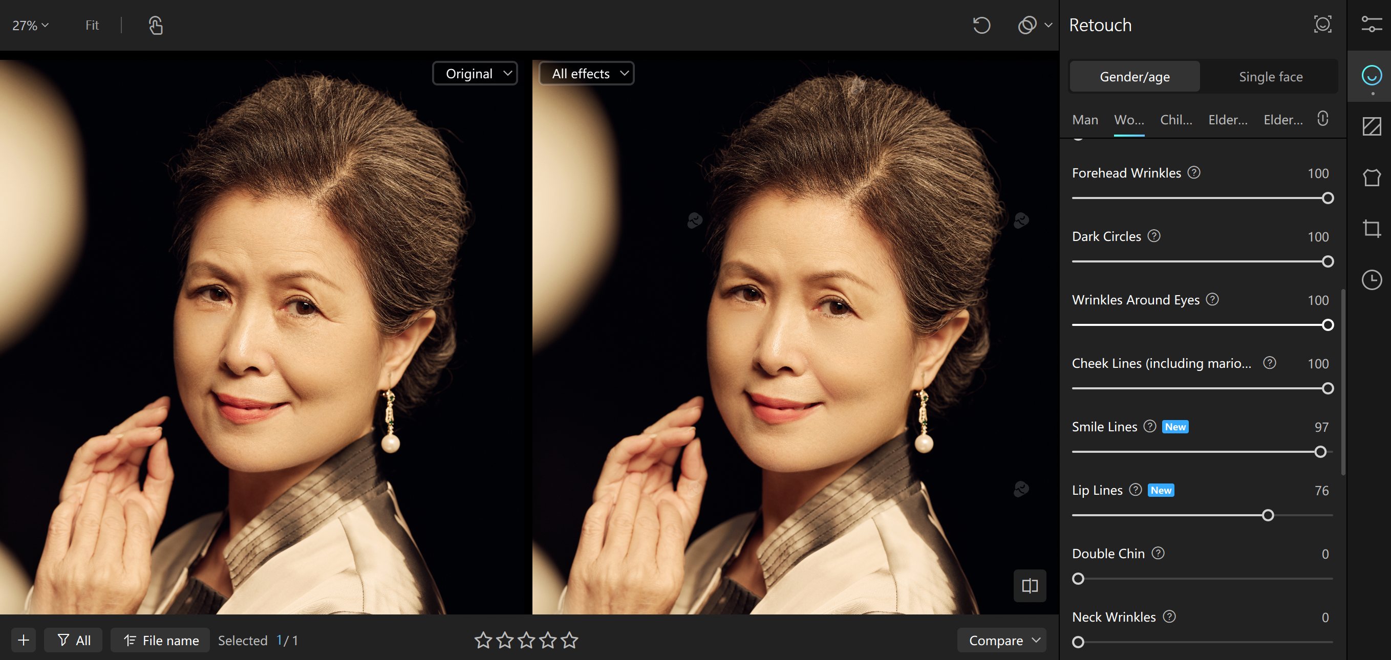 As we age, our skin naturally develops fine lines, forehead creases, dark circles, and even deeper wrinkles like nasolabial folds. While these changes are a part of life, they can sometimes distract from the true essence of a portrait. Especially in photography, they can appear harsher than intended under high-resolution cameras and studio lighting. For parents preserving family memories, professionals delivering polished headshots, or anyone wanting timeless images, these visible signs of aging can feel frustrating.